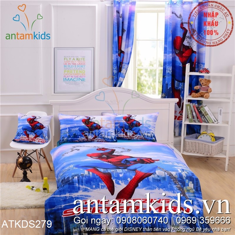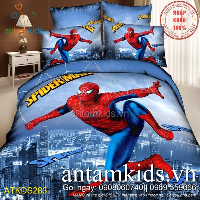 Bộ chăn ga gối đệm hình siêu nhân Người nhện SpiderMan cực sành điệu cho bé trai ATKDS283