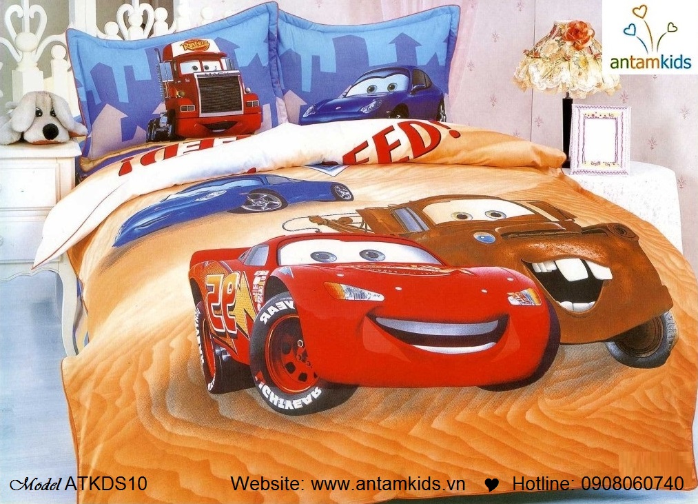 Bộ chăn ga gối McQueen ATKDS10 - Mền drap hoạt hình ô tô sành điệu cá tính cho bé trai - AnTamKids.vn