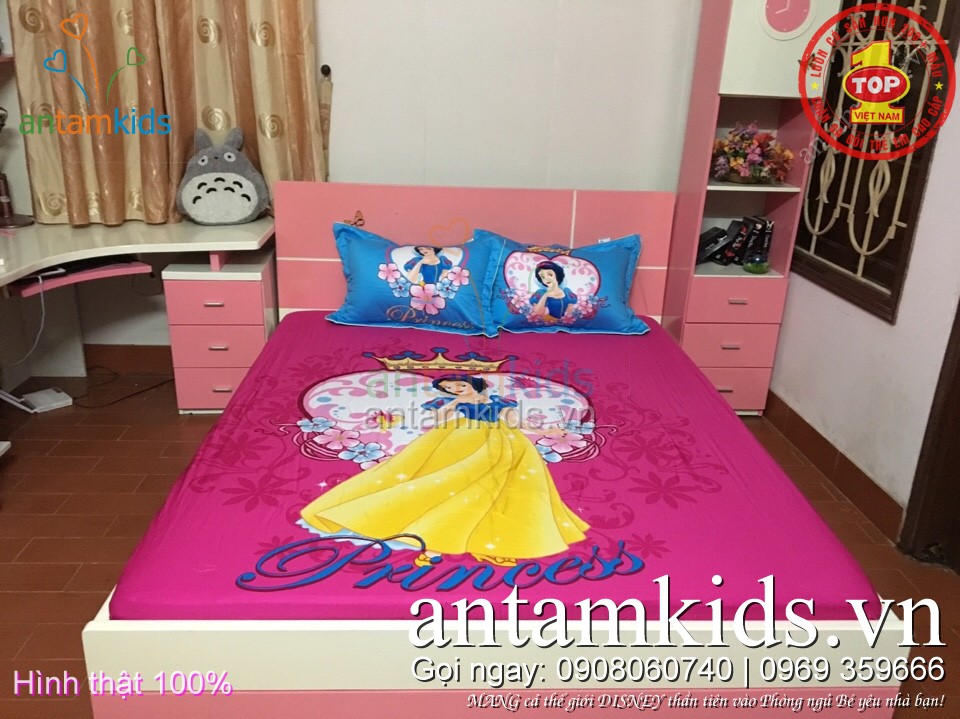 Bộ ga gối hình Công chúa Disney Nàng Bạch Tuyết - Snow White sắc hồng mộng mơ dành cho em bé gái - Hình thật 100% của AnTamKids.vn