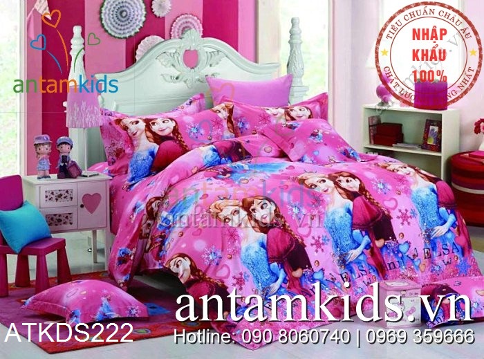 Chăn ga gối trẻ em hình Nữ hoàng Băng giá Frozen Anna Elsa cho em bé gái - antamkids.vn