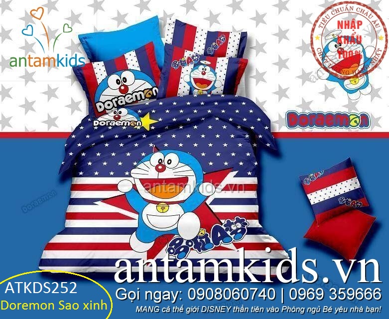 Chăn ga gối hình Doremon Sao xinh, vô cùng dễ thương cho bé yêu ATKDS252