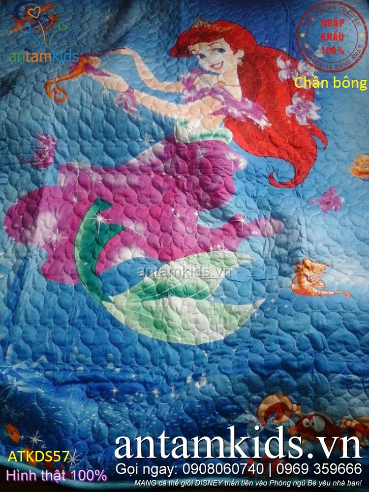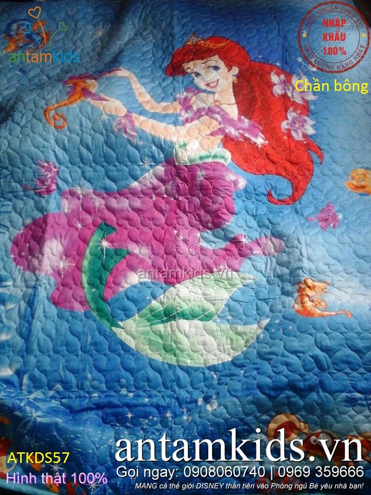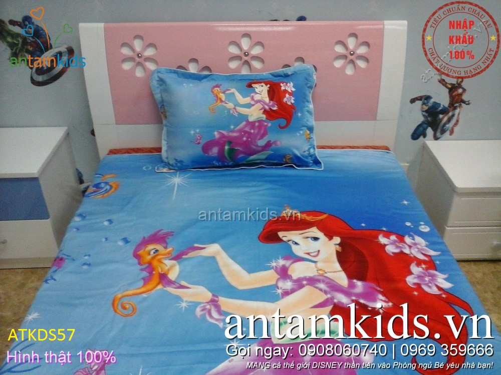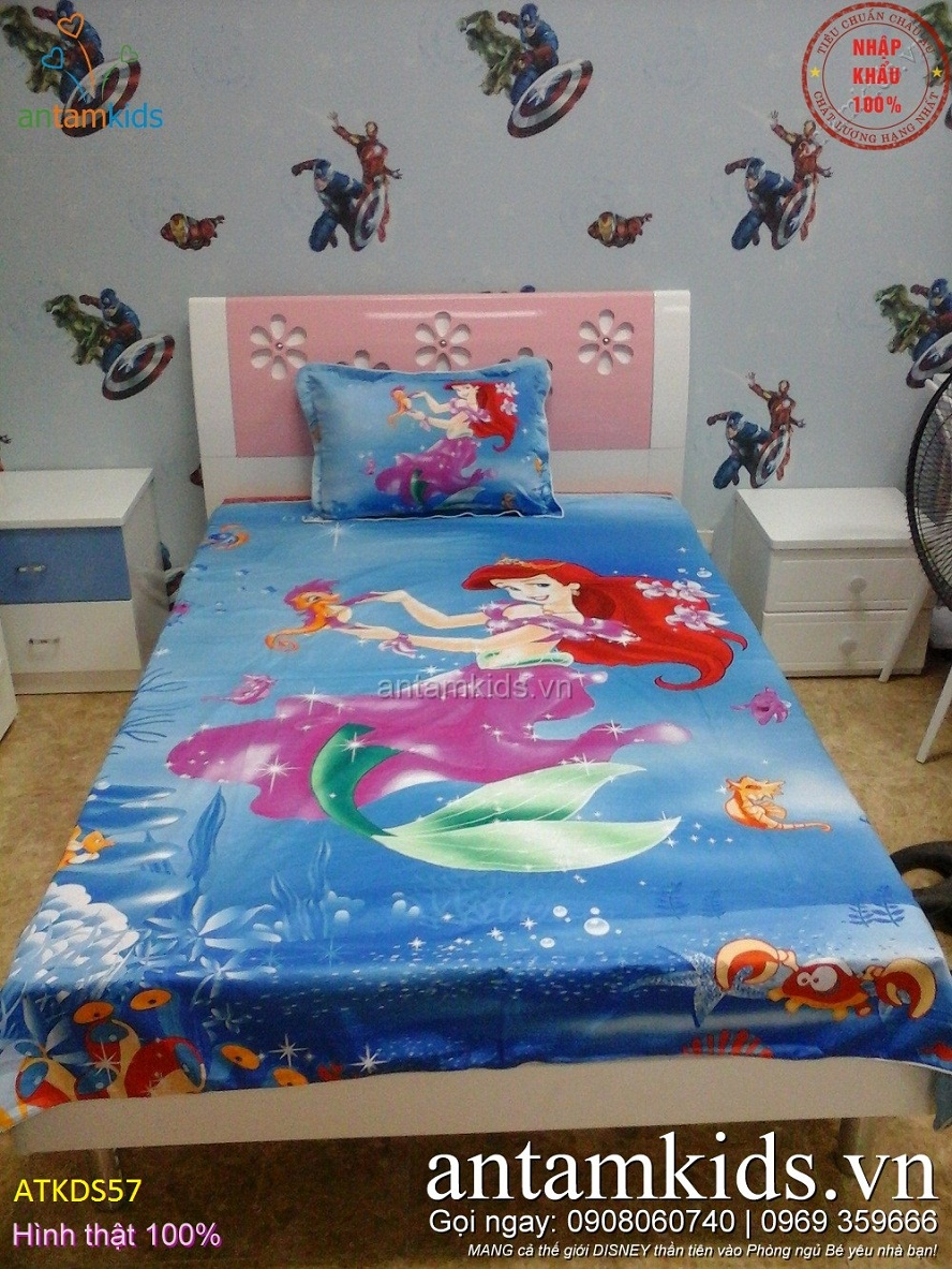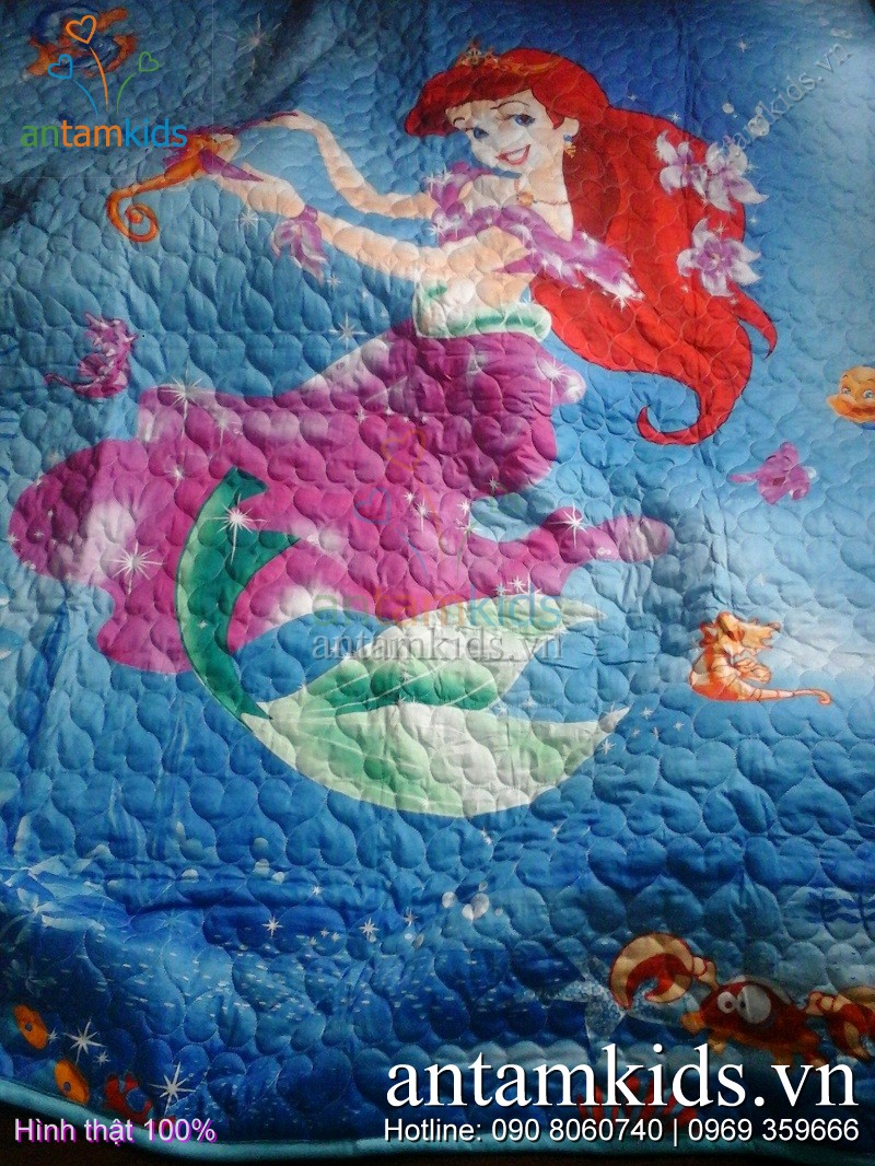 Chăn ra gối nàng Tiên cá màu Xanh dương cực dễ thương cho bé gái ATKDS57