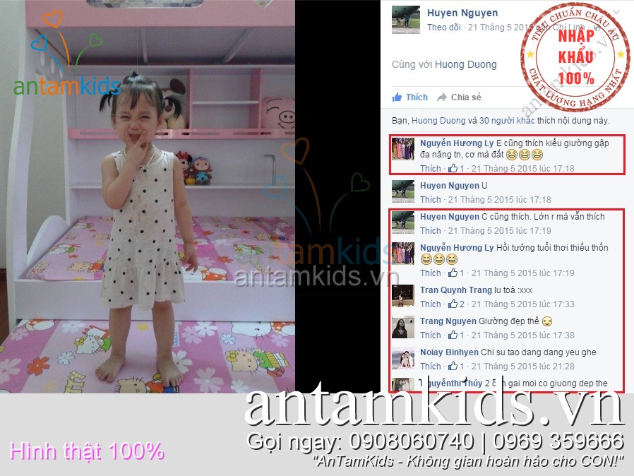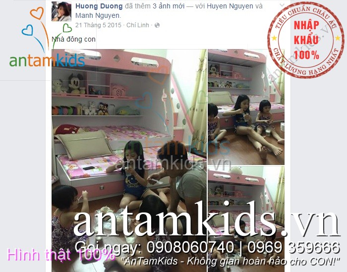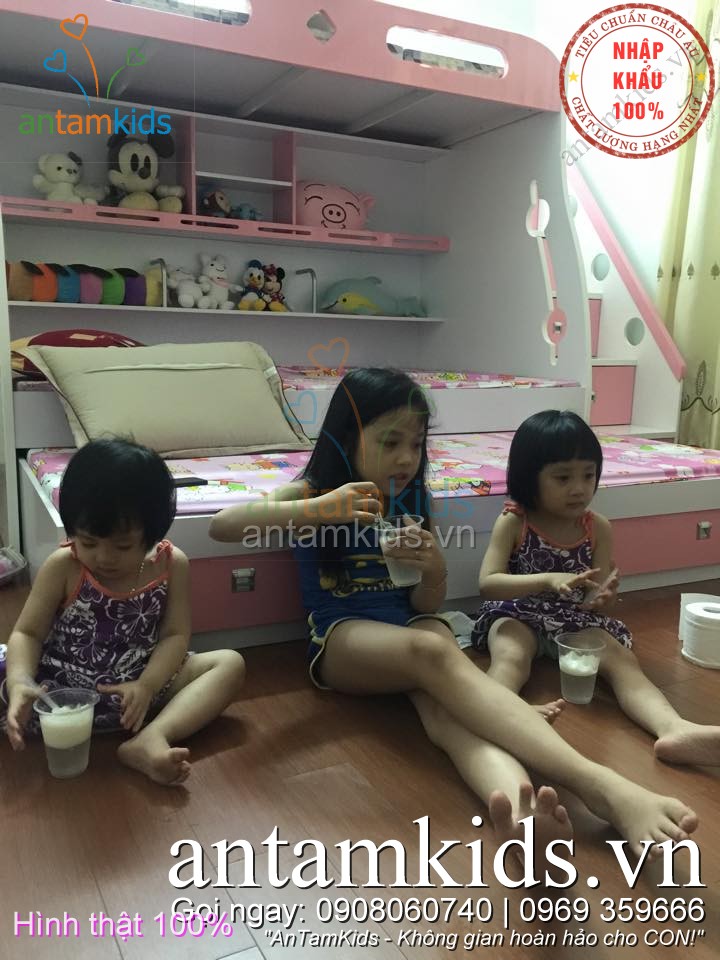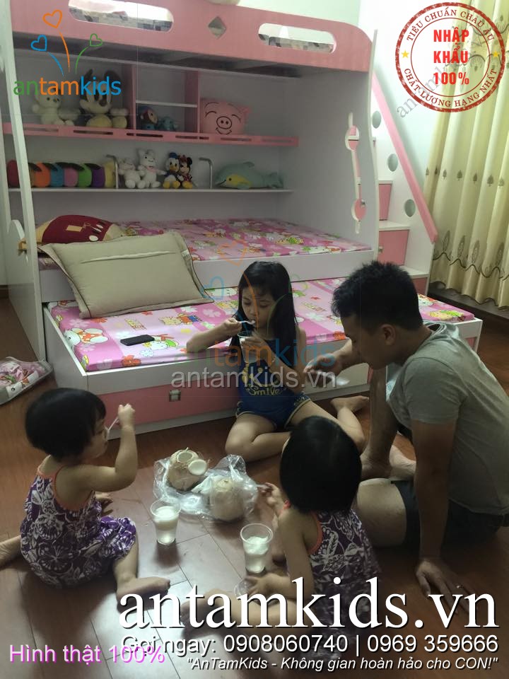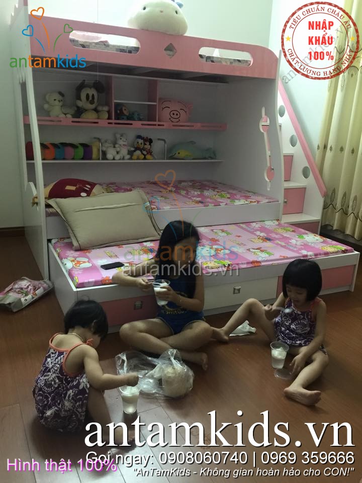 Giường ngủ 3 tầng nhập khẩu của 3 con gái mẹ Huong Duong_Hải Dương