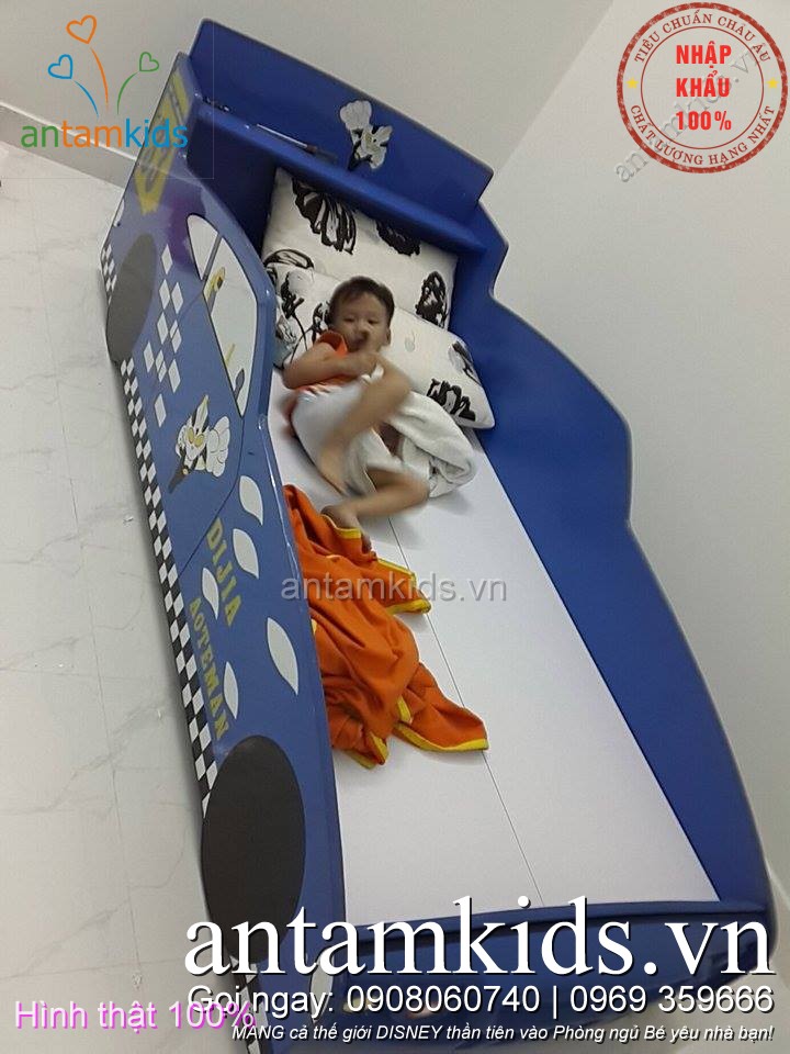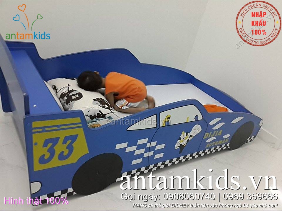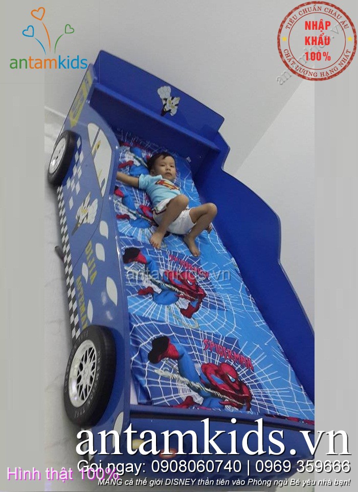 ✔ Nhìn Bé thật Vui sướng Rạng ngời trên tấm Drap Người Nhện & Chiếc Giường xe ô tô ATK6011 màu xanh sành điệu Mẹ mới mua TẶNG này, Thật là Happy quá chừng ạ !