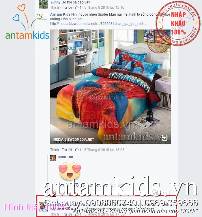 ✔ Cảm ơn Mẹ Minh Thu–Tiền Giang đã tin tưởng chọn mua Bộ sản phẩm Giường xe ôtô và Chăn-Ga-Gối SpiderMan của AnTamKids dành tặng cho Con Trai yêu !