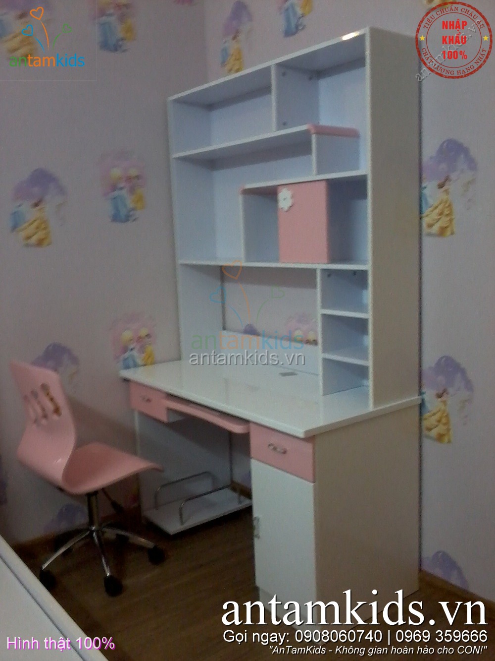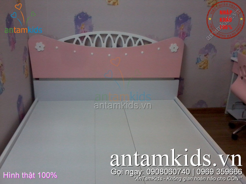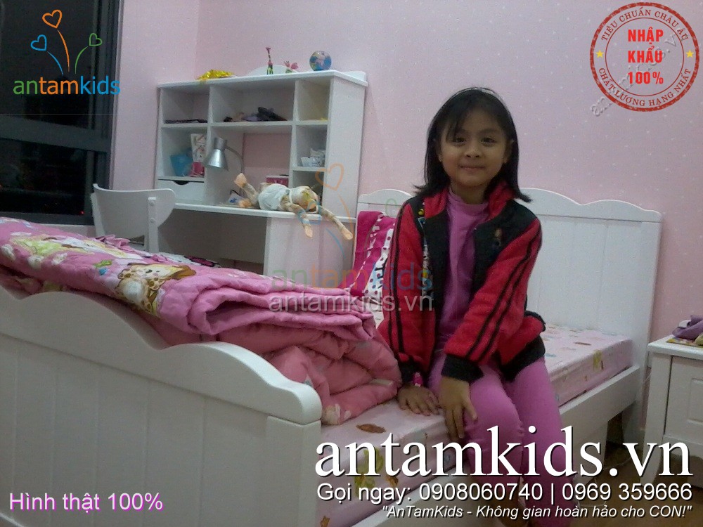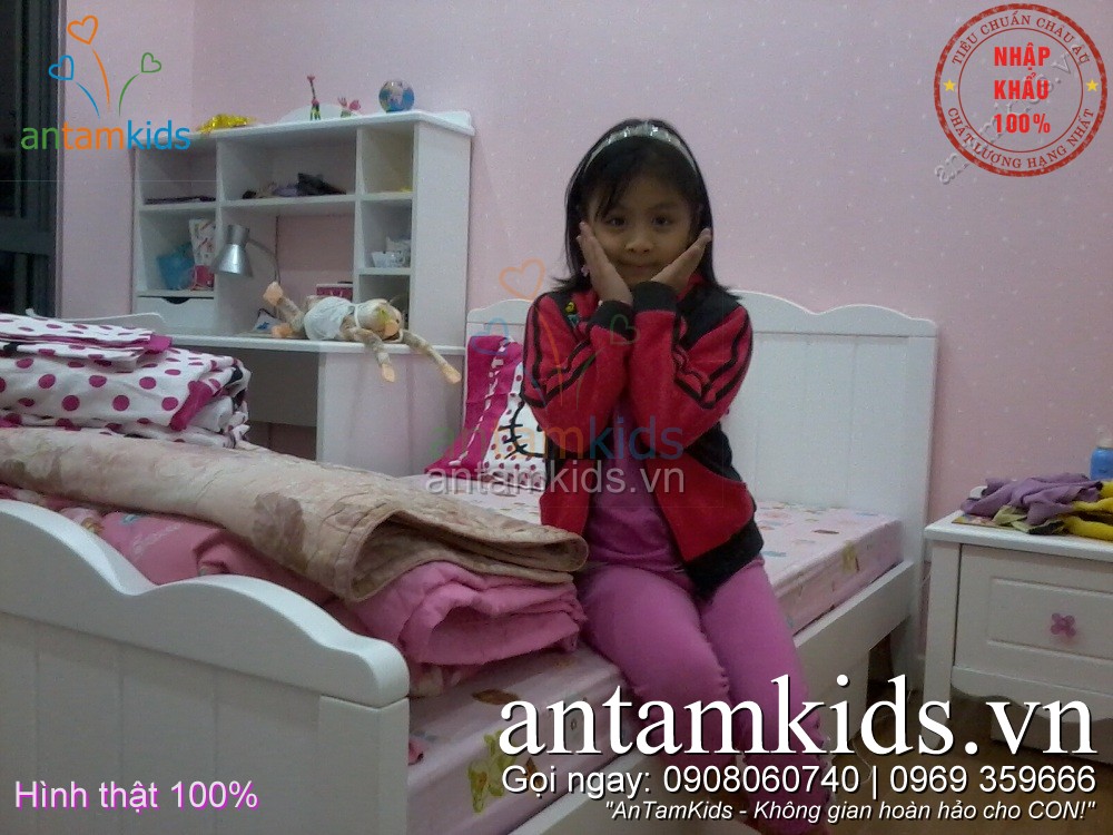 Phòng ngủ xinh của Bé Aki Phương Vy với gam màu trắng hồng được mẹ Hương Giang Momochan81 chọn mẫu đặt AnTamKids đóng bằng gỗ tự nhiên xoan đào. Bé Aki vô cùng yêu thích căn phòng mới vừa được bố mẹ tặng.