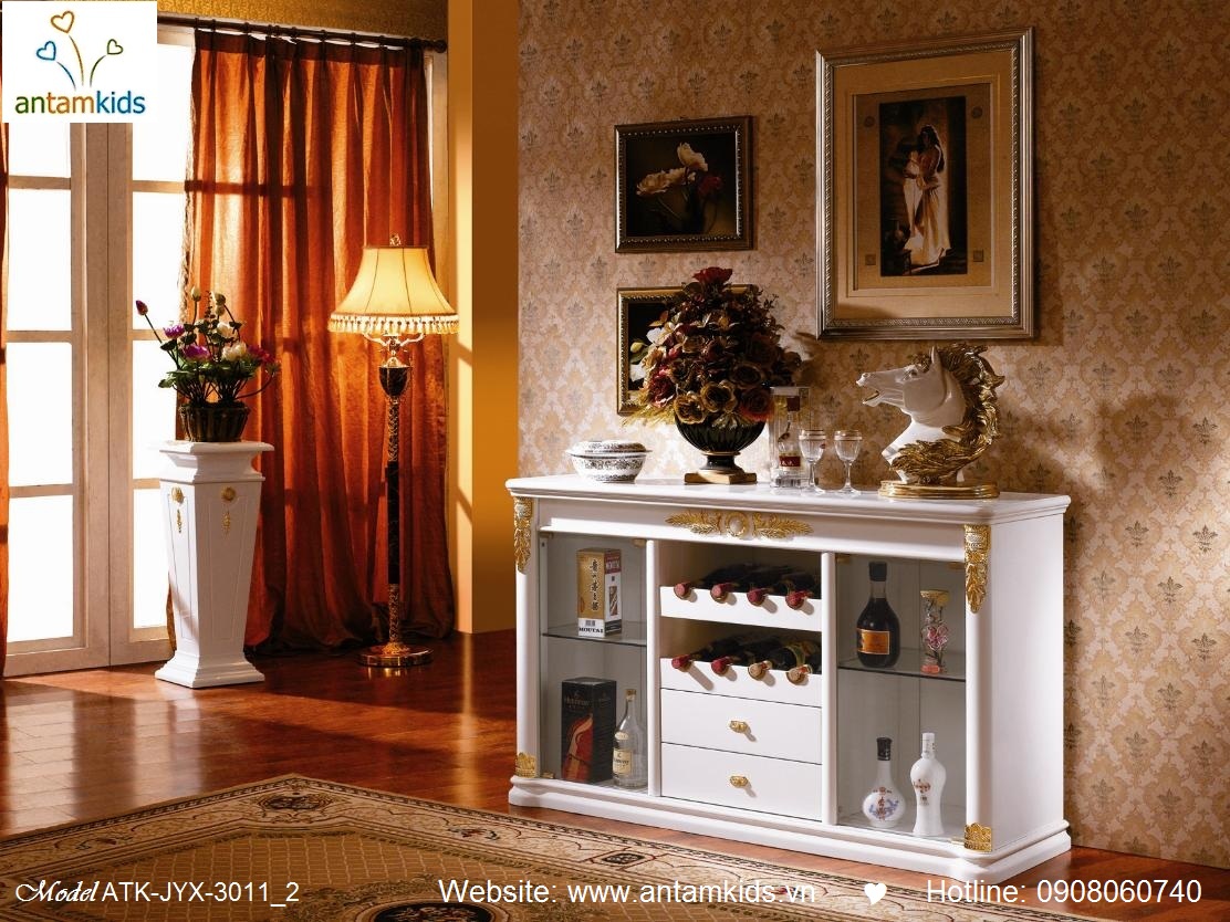 Chất liệu được làm bằng gỗ sồi nga tự nhiên & một phần mdf đã qua xử lý chống cong vênh mối mọt, họa tiết trang trí mạ vàng 24K, nước sơn sáng bóng chống trầy xước, phụ tùng kim loại nhập khẩu đạt các tiêu chuẩn châu âu và quốc tế.